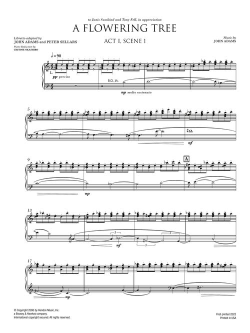 O libreto desta ópera foi adaptado por John Adams e Peter Sellars a partir de um conto folclórico do sul da Índia e poemas traduzidos por A.K. Ramanujan. A Flowering Tree estreou no MuseumsQuartier em Viena, em 2006. Os críticos a descreveram como "...opulenta, onírica, intensamente lírica, por vezes sombria e estranha" (The New Yorker) e "...algumas das passagens musicais mais deslumbrantes que Adams já compôs" (Daily Telegraph).