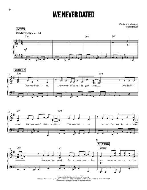 Join GRAMMY-nominated singer-songwriter sombr and work through some heartbreak in New York City. This collection lets you play every track from his breakthrough album I Barely Know Her. Sheet Music Essentials brings together a thoughtfully curated collection of intermediate-level solo piano arrangements for today's pianists. Featuring complete lyrics and chord symbols, these polished charts are easy to follow and ready to perform.