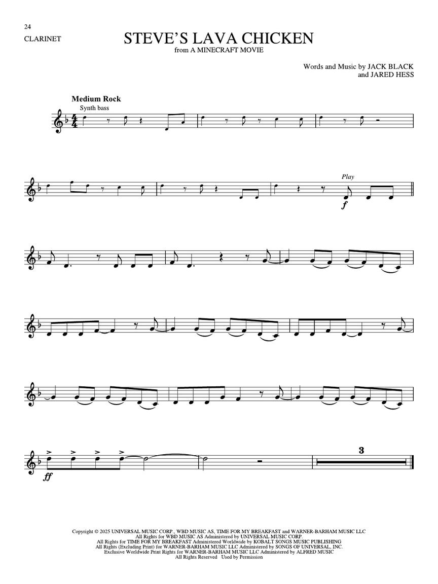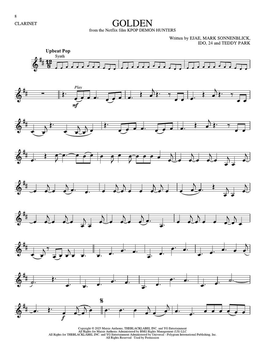 Play along with standout songs from top new films, including Kpop Demon Hunters, Minecraft, Wicked, Moana 2, Snow White (2025), Joker: Folie a Deux, and more. This collection features 12 memorable tracks arranged for solo clarinet that capture the style and energy of the movies themselves. Featured titles include “Defying Gravity,” “Popular,” “Die with a Smile,” “Golden,” “I Feel Alive,” “Beyond,” and more. Perfect for players of all levels who want to enjoy their favorite hits at home, in lessons, or on stage!