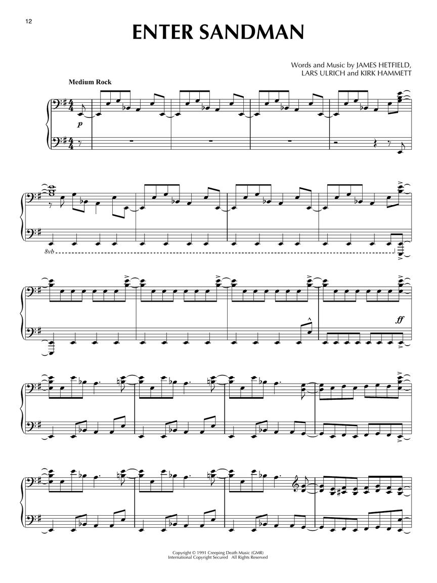 Metallica on piano? Absolutely. This collection brings the energy, intensity, and iconic riffs of 12 Metallica classics to the keys, arranged for intermediate piano solo. Fans will recognize the power of “Enter Sandman,” the haunting beauty of “Nothing Else Matters,” the darkness of “Fade to Black,” and the drive of “Master of Puppets,” along with more favorites that have made Metallica one of the biggest names in heavy metal.
